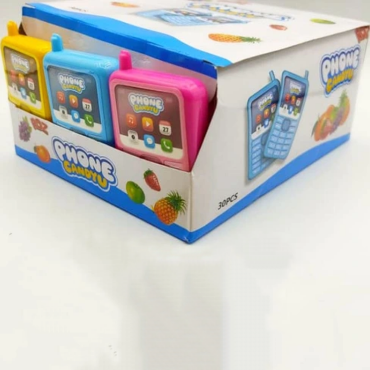 آبنبات موبایلی سه رنگ با طعم میوه ای باکس 30 عددی phone candy