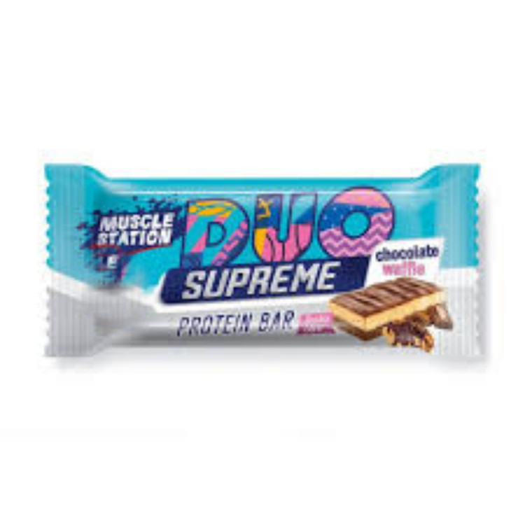 پروتئین بار کرانچی سوپریم با مغز شکلات و وافل مدل Muscle Station supreme Duo (35 گرم)