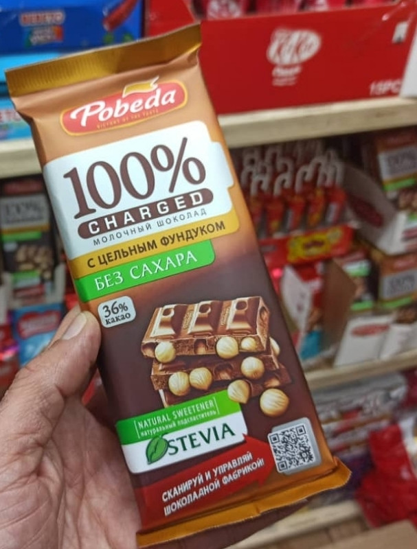 شکلات تلخ 36 درصد فندوقی پوبدا 90 گرم (Pobeda Dark Chocolate 36% with Whole Hazelnuts) یک گزینه مناسب برای علاقهمندان به شکلاتهای کمقند و خوشطعم است. این محصول با استفاده از شیرینکننده طبیعی استویا تهیه شده و فاقد شکر افزوده است، که آن را به انتخابی سالمتر برای افرادی که به دنبال کاهش مصرف قند هستند، تبدیل میکند.