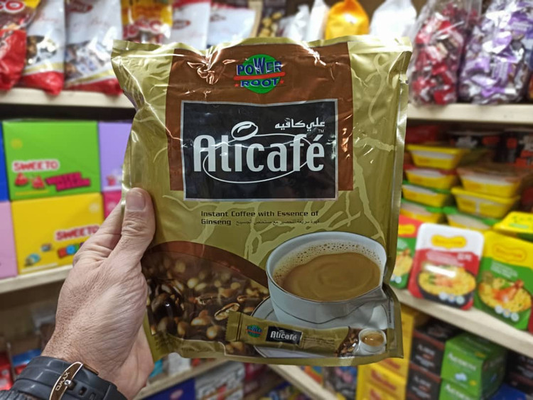 کافی میکس ۲۰عددی علی کافه طلایی Alicafe Instant 5in1 Premix محصولیست که از ترکیب چند ماده دیگر با قهوه و شیر بوجود آمده است. ترکیبی که به علت طعم فوقالعاده به شدت میتواند اعتیادآور باشد. برند Alicafe که یکی از اصلیترین تولیدکنندههای قهوه،نسکافه و قهوهی فوری میباشد ، اینبار با استفاده از جینسینگ و تونکات و ترکیب کافی میکس طلایی علی کافه را تولید کرده است.