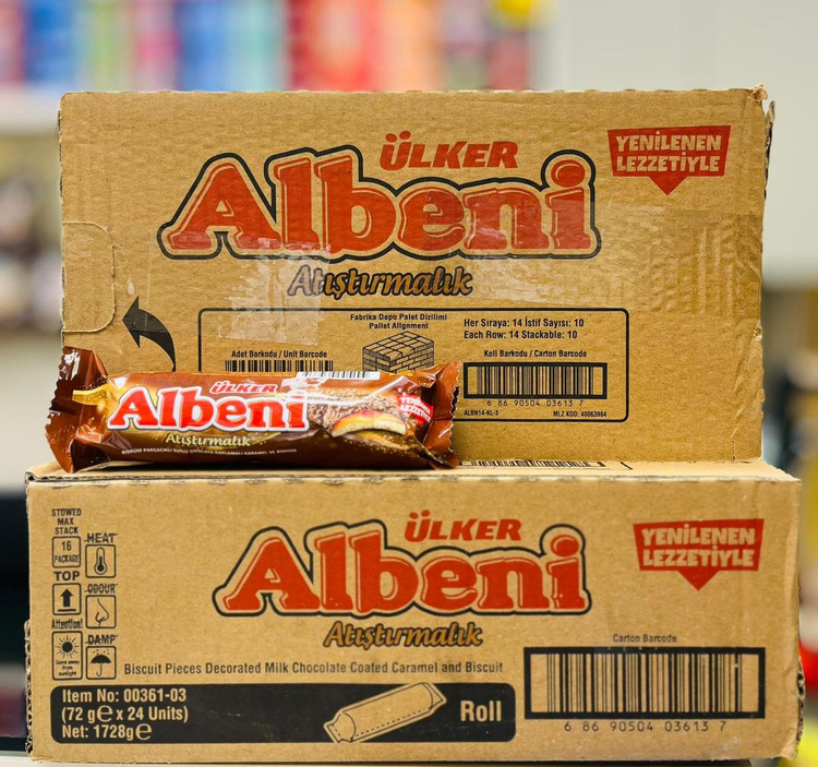 معرفی بیسکوئیت آلبنی کاراملی شکلاتی برند Albeni Ulker